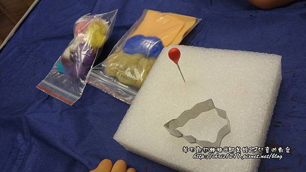 因為羊毛氈的工具是「針」,而且針頭真的很細又尖,而到兒童遊戲室裡的都是小小孩,所以工作人員們都很謹慎且細心的提醒各位陪同的家長,千萬要小心的操作。大略的說明羊毛氈的材料有「多色的染色羊毛」、「不織布」、「泡棉(工作墊)」、「羊毛氈用針」、「各式模型」。待開始時,孩子們上前去選自己喜歡的圖案模型,媽媽們則上前去領「針」,且工作人員發給每個參與的小朋友一份多色的染色羊毛及不織布。